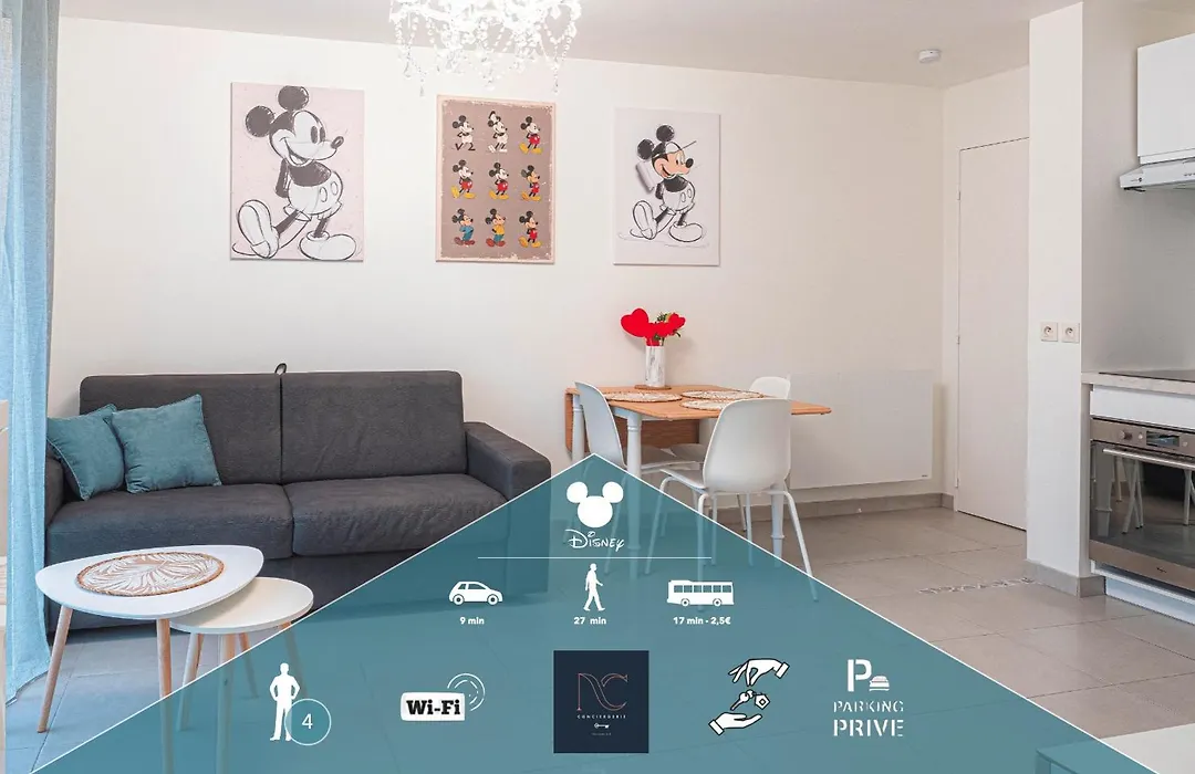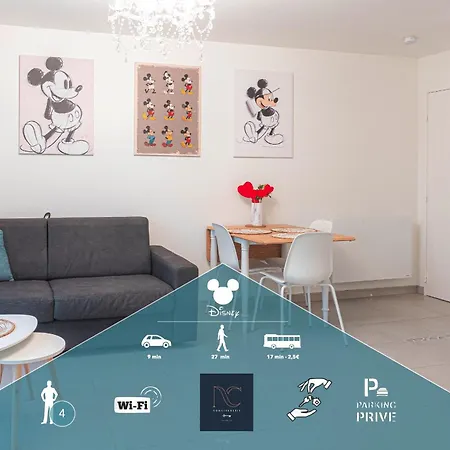 The interior is set up for maximum convenience, featuring soundproof windows, along with a sofa set. *Disneyland-Paris* 4Pers, Parking, Wifi is equipped with high-speed internet and a TV set, perfect for guests to enjoy their free time. The apartment also includes a tub and a separate toilet. Furthermore, a hair dryer and bath sheets is available.